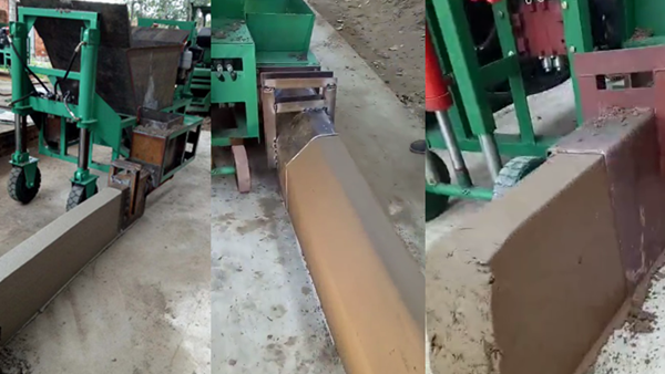 擠壓式路沿石成型機作業(yè)原理:利用機器螺旋桿攪拌,進行擠壓產(chǎn)生動力,使機器前行并且擠出路緣石滑模的料,成型后鑲嵌到地面上,靠螺旋緩轉(zhuǎn)力擠出成型。成型后的路沿石與地面產(chǎn)生的推力使機器向前行走。